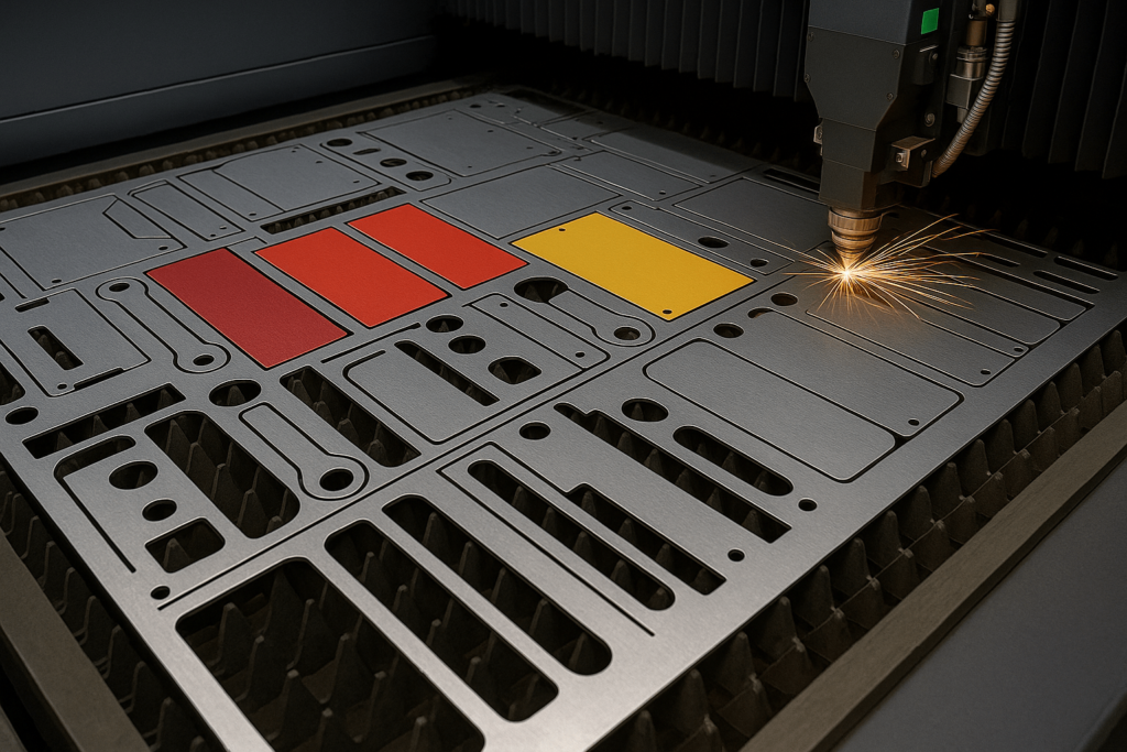 Design your parts to nest efficiently within standard sheet sizes (e.g., 4×8 ft or 5×10 ft). Reduce empty space to minimize scrap rate. A few millimeters of optimization can save hundreds per batch.