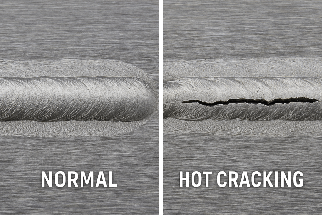 Hot cracking occurs as the weld solidifies due to aluminum’s high thermal expansion. Cracks render a part unusable and require costly rework or scrapping.