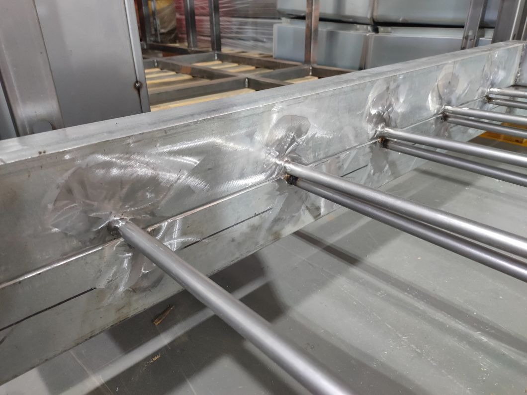 Laser-cut installation circular holes on the welded steel frame panel.